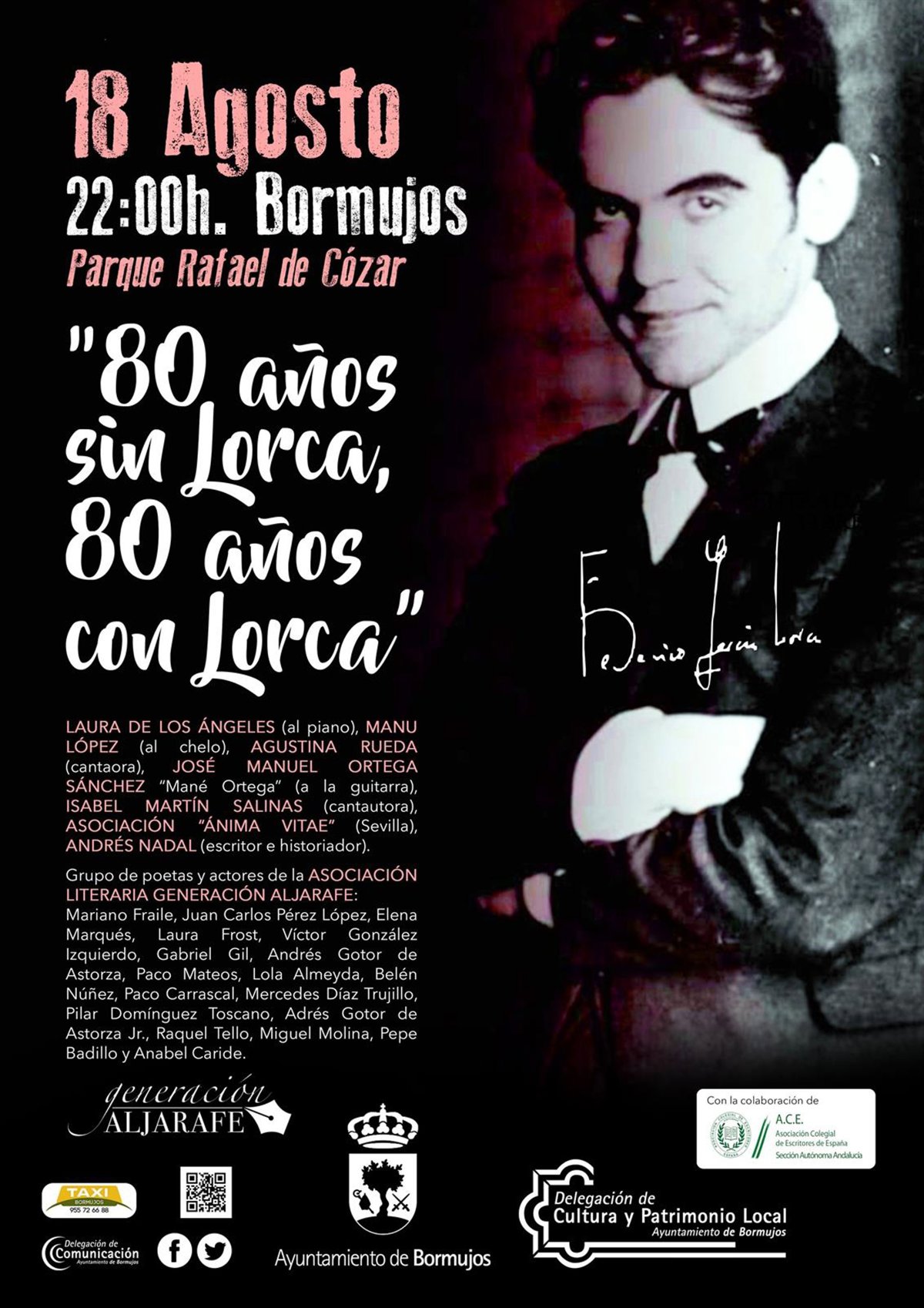 Este homenaje, que se celebrará el próximo 18 de agosto en el Parque "Rafael de Cózar" se ha denominado '80 años sin Lorca, 80 años con Lorca'. Será al aire libre y comenzará a las 22,00 horas.