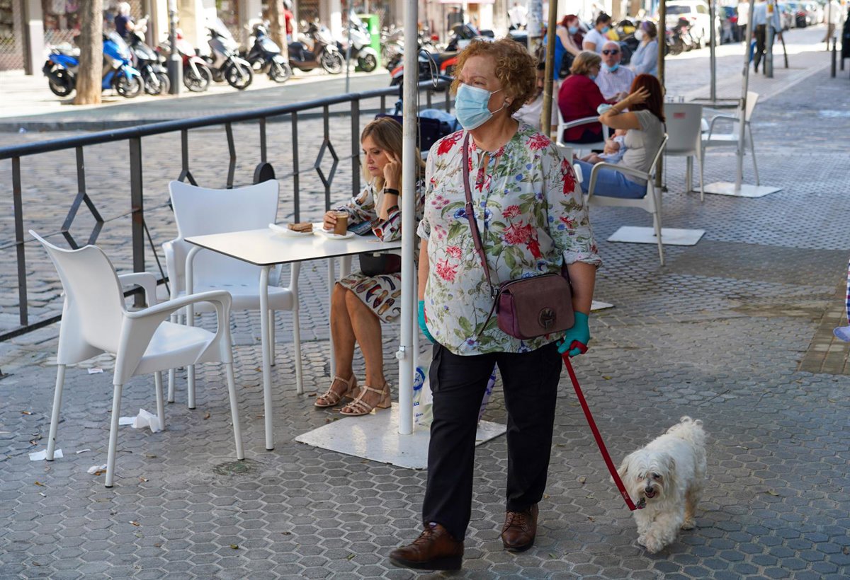 Un mujeres pasea con su perro delante de un bar - Eduardo Briones - Europa Press - Archivo