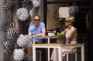 Archivo - Dos personas en un bar decorado con los farolillos tradicionales de la Feria de Abril, en foto de archivo. - María José López - Europa Press - Archivo