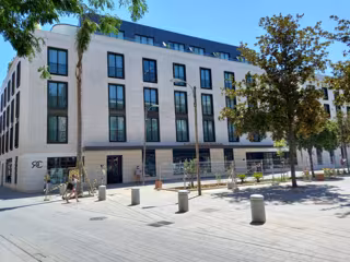 En esta plaza estuvo ubicado en su momento el Hotel París, un emplazamiento referente, que estuvo muy de moda a finales siglo XIX. "El diseño del edificio actual busca restaurar algo de ese glamour perdido, creando un nuevo y elegante destino para los visitantes en una atractiva plaza peatonal, donde se puede disfrutar de una arquitectura actual y llena de detalles que respetan la sintonía del lugar", indica.