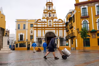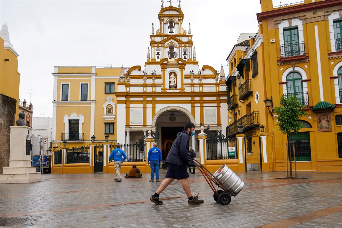 Archivo - Un repartidor de barriles de cervezas pasa por la Plaza de la Macarena, en foto de archivo. - Eduardo Briones - Europa Press - Archivo