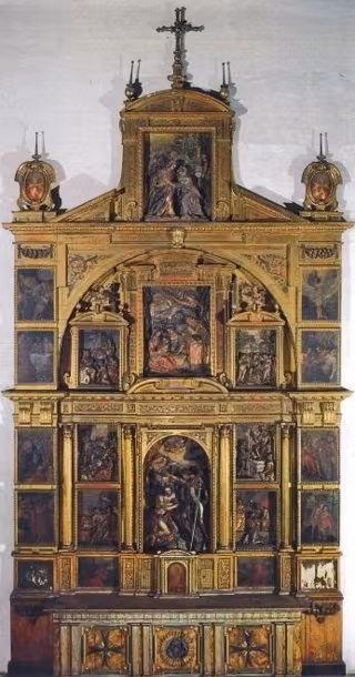 Este retablo de San Juan Bautista está compuesto por nueve relieves escultóricos y por 13 pinturas colocadas en los laterales, hechas por otro artista. El interés de esta obra está en la perfección de los retablos montañesinos, que reproducen escenas de la vida del Precursor. Sobre la escena central aparece el nacimiento del Bautista, y en el ático la Visitación de la Virgen a Santa Isabel.
