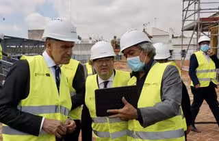 Ambos dirigentes han tenido la oportunidad de recorrer el interior de las naves que forman parte de Artillería, entre ellas, 'La catedral', así como ver la evolución de las obras desde sus azoteas, siguiendo las explicaciones de la directora general de Cultura, Isabel Ojeda, quien ha mostrado los trabajos que se están desarrollando y los detalles del proyecto.