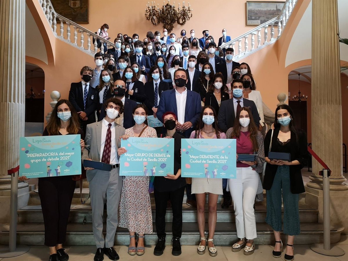 El Salón Colón del Ayuntamiento de Sevilla ha acogido este mediodía la final de la 'Primera Liga de Debate Ciudad de Sevilla', impulsada por la Delegación de Juventud, una competición en la que han participado 20 equipos de diez centros educativos de distintos distritos de la ciudad.