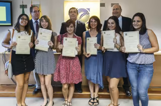 El rector de la UPO, Vicente Guzmán, ha entregado el premio a estas estudiantes en una ceremonia en la que ha estado acompañado por el decano de la Facultad de Humanidades de esta universidad, José Miguel Martín, y el profesor del Departamento de Geografía, Historia y Filosofía y secretario del jurado del premio, Francisco Ollero.