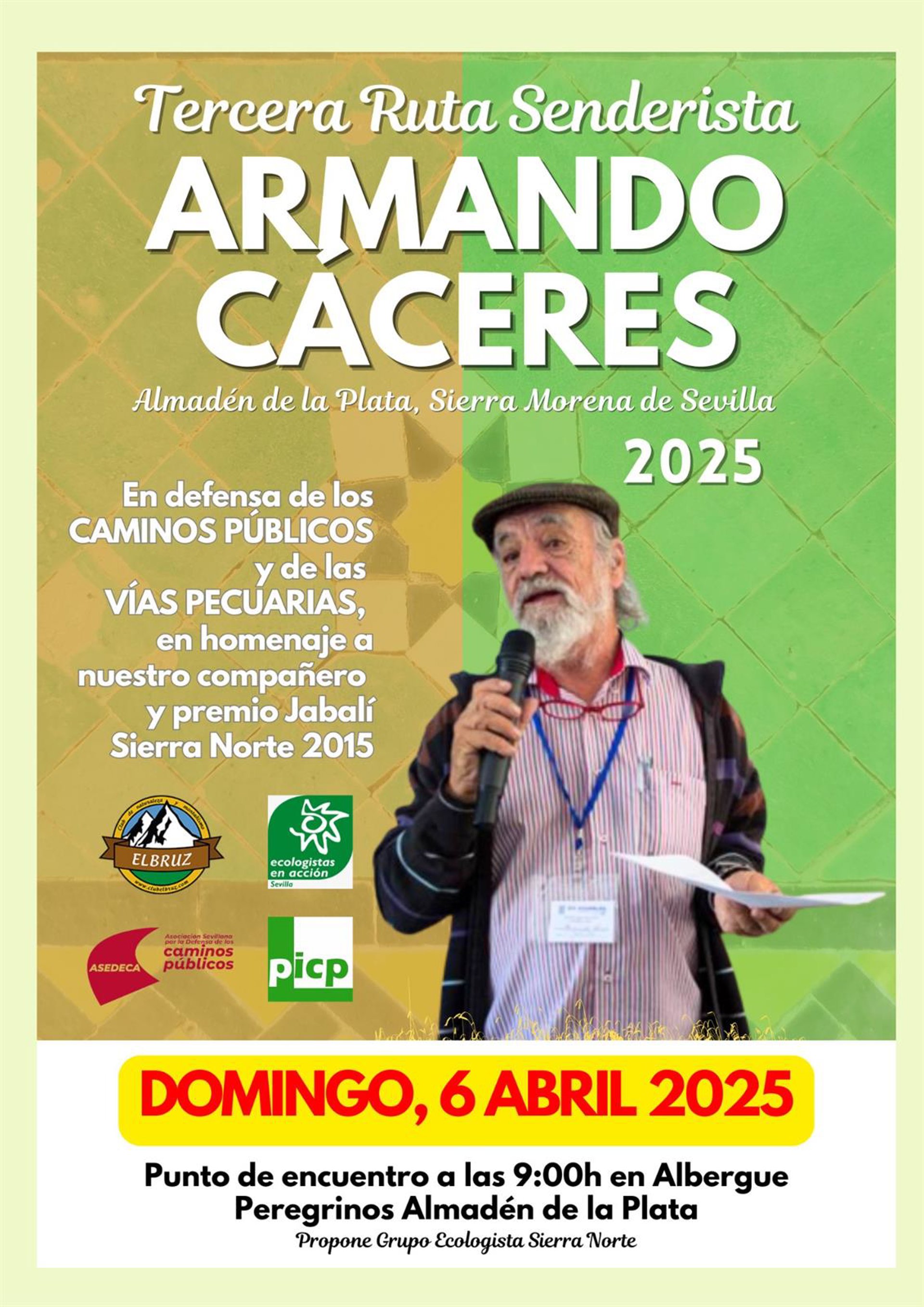 El Club Elbruz de Montañismo y Naturaleza, Ecologistas en Acción, Asedeca y la Plataforma Ibérica por los Caminos Públicos promueven la III Ruta Armando Cáceres, una ruta deportiva, ambiental y reivindicativa que se celebrará el domingo 6 de abril en Almadén de la Plata, como tributo a este defensor del valioso patrimonio natural y caminero que articula y conecta el territorio vinculado al Parque Natural Sierra Morena de Sevilla.