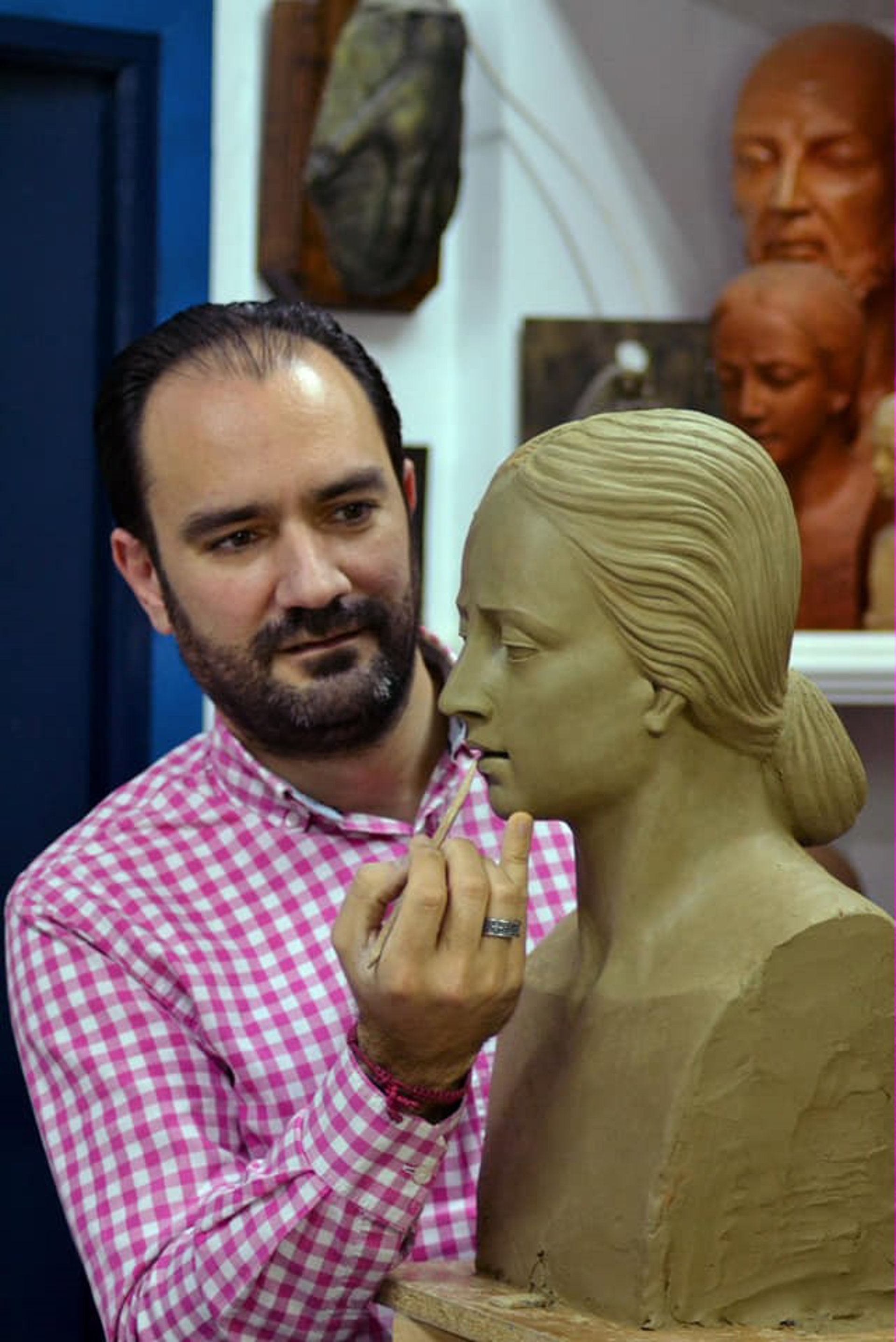 El imaginero palaciego Juan Manuel Martín, en su taller. - Juan Manuel Martín