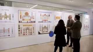 El delegado de Fiestas Mayores, Manuel Alés, y el Presidente del Colegio Oficial de la Arquitectura Técnica de Sevilla, Helena Ruiz Fernández, han inaugurado este martes la exposición del concurso de ideas para la Portada de la Feria de Abril 2026, en compañía del ganador, Davide Gambini.