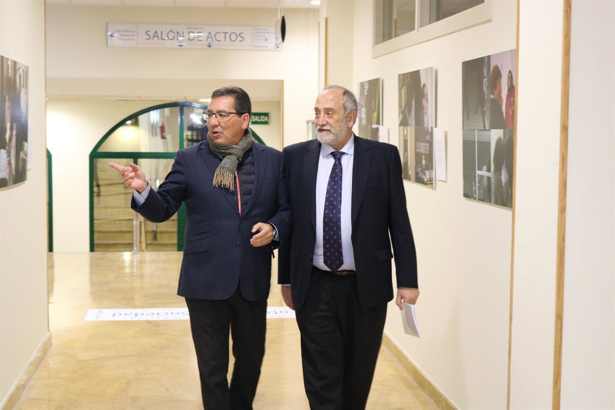 El presidente de la Fundación Cajasol, Antonio Pulido, ha inaugurado la exposición fotográfica 'Fotografía y sociedad' durante el acto de la copa de Navidad del Instituto de Estudios Cajasol en Sevilla.
