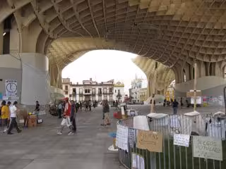 Mientras, y después de que el pasado domingo miles de personas se reuniesen en las calles de Sevilla en la primer gran manifestación del movimiento 15-M, sus seguidores se siguen concentrando los miércoles y viernes a las 20,00 horas en las Setas, ahora renombrada Plaza 15 de mayo, y continúan llevando a cabo numerosas actividades como talleres, charlas, performances o sesiones musicales.