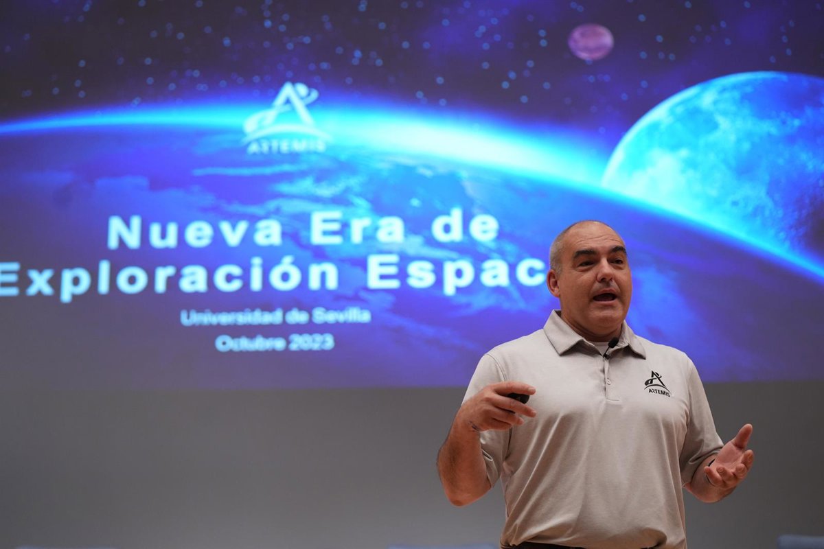 El ingeniero de la NASA Carlos García-Galán ha narrado este viernes en la Escuela Técnica Superior de Ingeniería (ETSI) de la Universidad de Sevilla (US), frente a un público asistente de más de 700 universitarios y estudiantes de institutos, los avances que ha supuesto para la carrera espacial la Misión Artemis I.