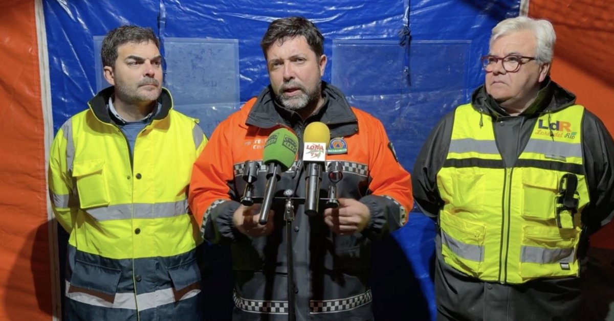 El alcalde de Lora del Río (Sevilla), Antonio Enamorado, acompañado por los concejales José Manuel Arancón y Juan Antonio Mayor, ha ofrecido una rueda de prensa en la tarde del sábado, 7 de febrero, desde el Puesto de Mando Avanzado (PMA) para informar sobre la situación de la crecida del río Guadalquivir a su paso por el municipio.