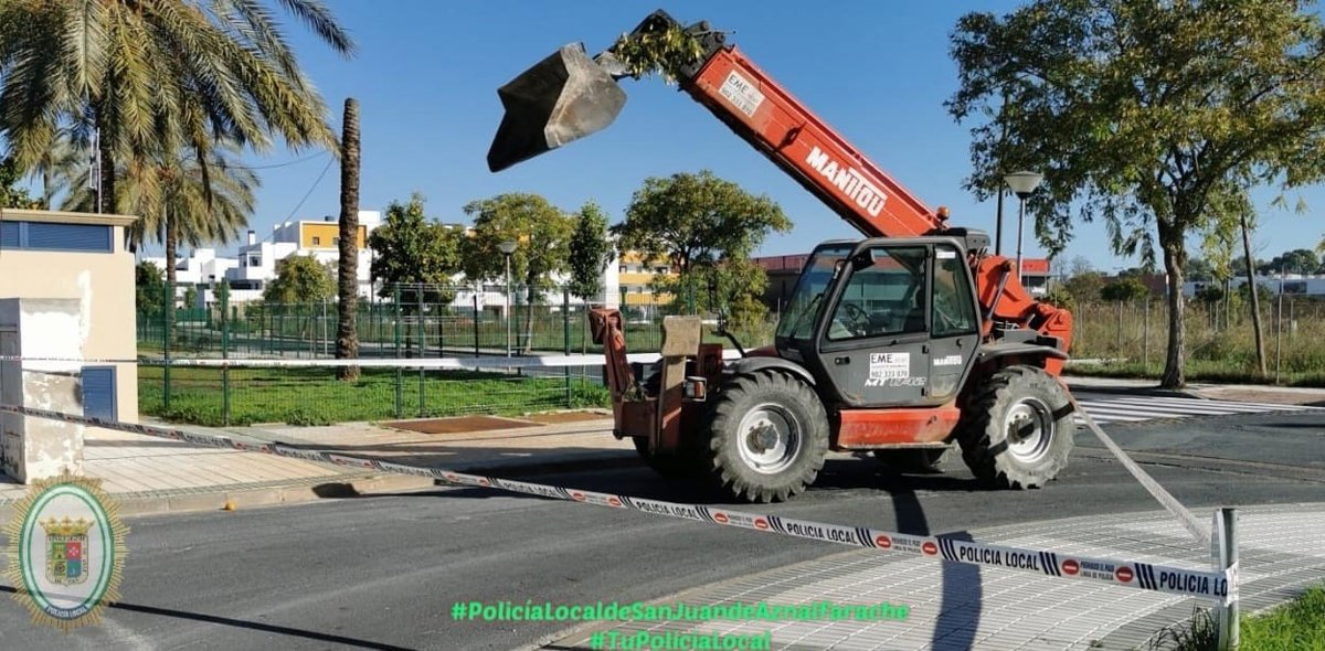 Según la Policía Local de San Juan, los hechos acontecieron en la zona de Real de Valdomina, que linda con el término municipal de Gelves y objeto de la construcción de varios recintos residenciales.