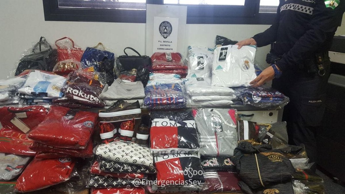Agentes de la Policía Local de Sevilla, adscrita a la Delegación de Seguridad, Movilidad y Fiestas Mayores, han intervenido en Palmete un total de 179 prendas y complementos falsificados que imitaban a distintas marcas de ropa así como a las equipaciones de diferentes clubes de fútbol, contando con un valor aproximado de 56.000 euros en el mercado.