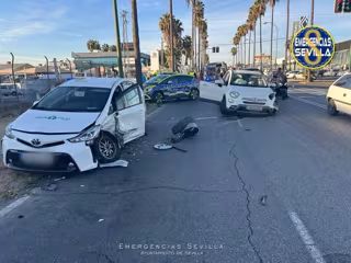 Según han informado los servicios de emergencias del Ayuntamiento de Sevilla, el accidente ha ocurrido sobre las 8,50 horas de este viernes, cuando este vehículo circulaba gran velocidad en el sentido contrario de la marcha por la Carretera de Su Eminencia, colisionando frontalmente contra un taxi.