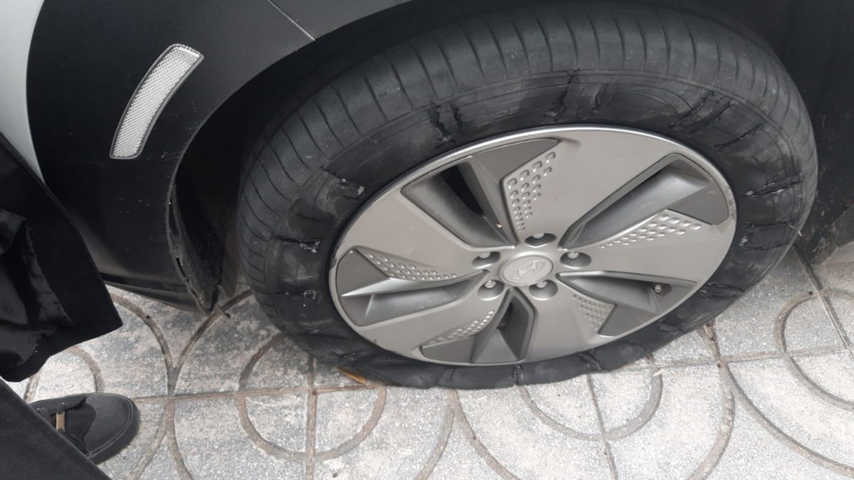 Así luce el neumático vandalizado del coche eléctrico municipal de Espartinas - AYUNTAMIENTO DE ESPARTINAS