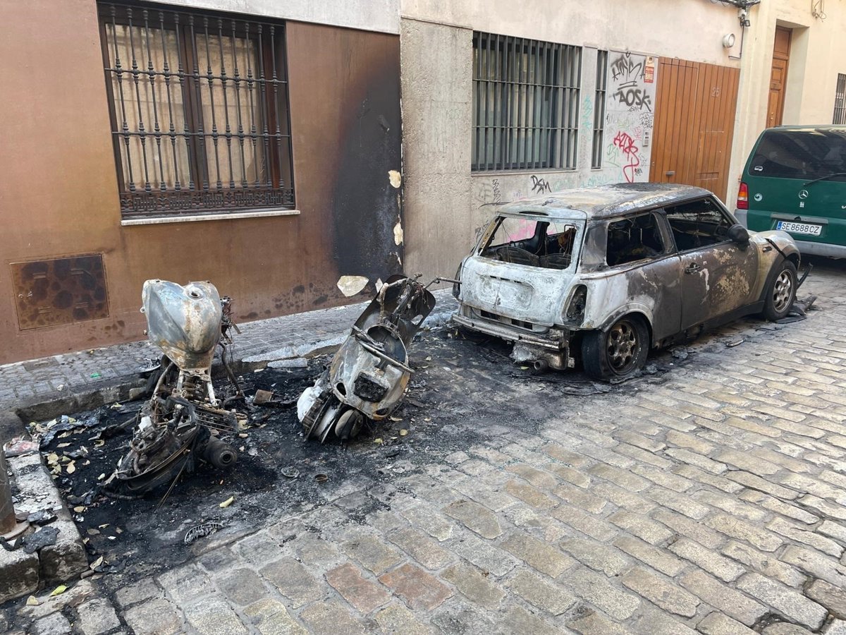La Policía Nacional está investigando las causas de un incendio acontecido de madrugada en la calle Joaquín Costa de Sevilla capital, en el entorno de la Alameda de Hércules, y saldado con la calcinación de dos motos y un turismo.