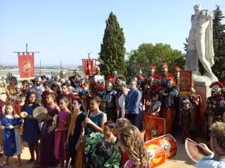 Tras dicho acto, las actividades han continuado en el anfiteatro con diversos pases fotográficos de los grupos recreacionistas, mientras en el teatro ha sido representada una venta de esclavos, entre otros aspectos.