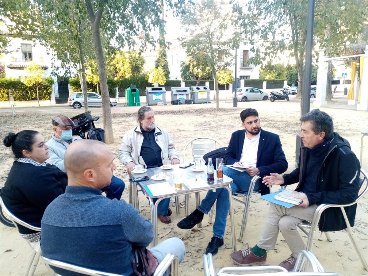 El candidato de IU a la Alcaldía de Sevilla, Ismael Sánchez, se ha reunido con representantes de la Asociación Parque Vivo del Guadaíra. - IU