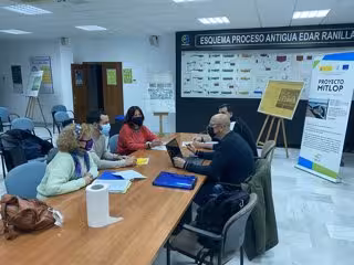 El portavoz municipal de Izquierda Unida, Daniel González Rojas, ha visitado, junto a representantes de CCOO, las instalaciones de la Estación Depuradora de Aguas Residuales (EDAR) de la Ranilla, dependiente de Emasesa y gestionada a través de una concesión administrativa adjudicada a FCC Aqualia, para conocer la situación de la plantilla y el estado de los accesos a la estación desde el barrio de Palmete, en el Distrito Cerro-Amate.