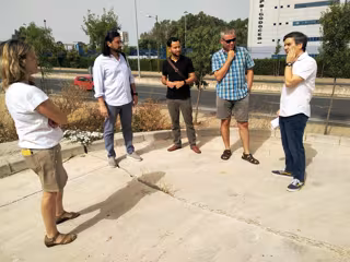 El portavoz municipal, Daniel González Rojas, con los afectados por las obras de la avenida La Raza - IU SEVILLA