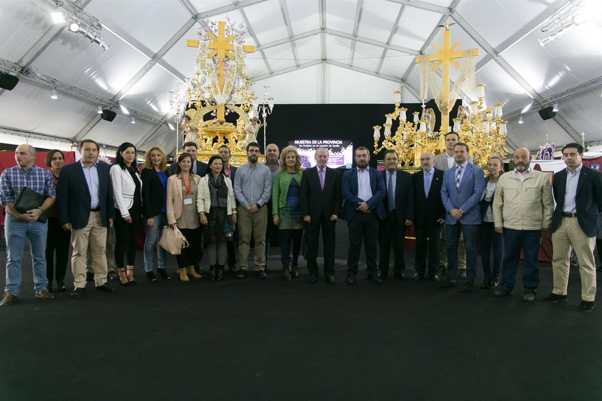 El presidente de la Diputación de Sevilla, Fernando Rodríguez Villalobos, ha inaugurado este viernes la IV Muestra de Semana Santa y Turismo Religioso de la Provincia, que se desarrolla hasta el domingo en el patio de la institución provincial. Durante su recorrido por la muestra, que organiza la Diputación, a través de Turismo de la Provincia-Prodetur, Rodríguez Villalobos ha estado acompañado por el presidente del Consejo de Hermandades y Cofradías de Sevilla, Joaquín Sainz de la Maza, además de alcaldes de los municipios representados y hermanos mayores de las cofradías que exponen en la muestra.