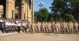 En este primer día, han sido unos 145 alumnos del colegio 'Buen Pastor', con edades entre los once y los 16 años, y otros 80 del colegio 'España', de ocho años, los partícipes en el acto. Asimismo, seis alumnos de cada centro han portado la bandera española, la cual han entregado al piquete encargado de izarla mientras sonaba el himno español.