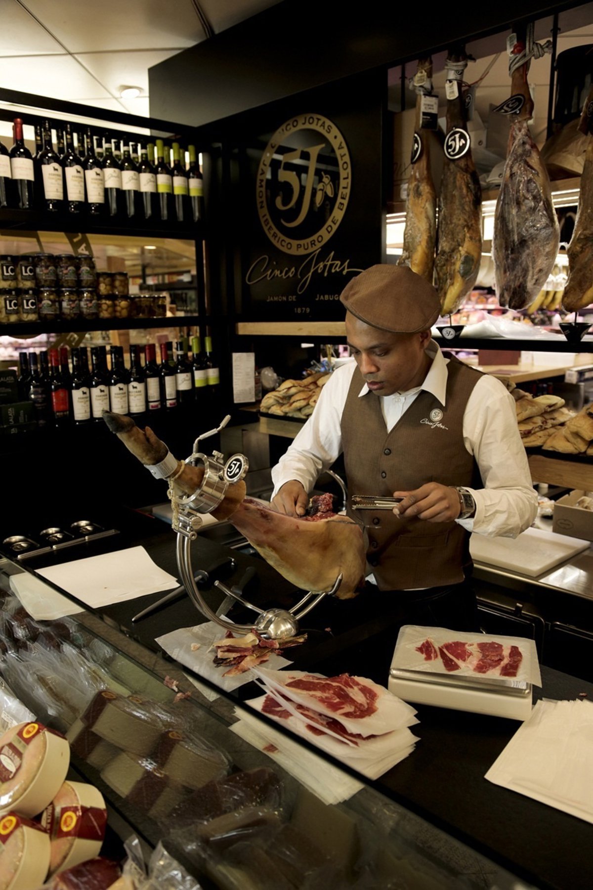 Este nuevo córner Cinco Jotas, el tercero de la marca en Europa, contará con una superficie de casi 30 metros cuadrados con dos espacios diferenciados, una boutique gastronómica Cinco Jotas, donde los consumidores podrán adquirir productos ibéricos y también vinos, licores y espirituosos del Grupo Osborne.