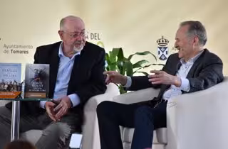 La XI Feria del Libro de Tomares (Sevilla) ha tenido el privilegio de contar este viernes con dos de las plumas más brillantes que ha dado la literatura española, dos grandes de la novela histórica, el jiennense Juan Eslava Galán y el barcelonés Jorge Molist.