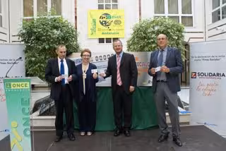 Según ha indicado ONCE en una nota, la organización va a dedicar el cupón del lunes 17 de junio a la casilla de Fines Sociales de la Declaración de la Renta. La consejera de Hacienda y Administración Pública, Carmen Martínez Aguayo, el delegado territorial de la ONCE en Andalucía, Ceuta y Melilla, Patricio Cárceles, el presidente del Consejo Territorial, Ventura Pazos, y el presidente de la Mesa del Tercer Sector, Manuel Sánchez, han presentado en la Delegación Territorial de la ONCE la imagen del cupón con el que la Organización quiere marcar la 'X' solidaria.