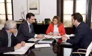 La consejera de la Presidencia e Igualdad, Susana Díaz, que ha mantenido este viernes un encuentro con el delegado del Gobierno de la Junta en Sevilla, Francisco Javier Fernández, sobre asuntos como la Mesa de Trabajo del Campo, en la que se ha puesto de manifiesto que en la provincia, "dejan de declararse unas 100.000 peonadas de las 147.000 cartillas que existen".