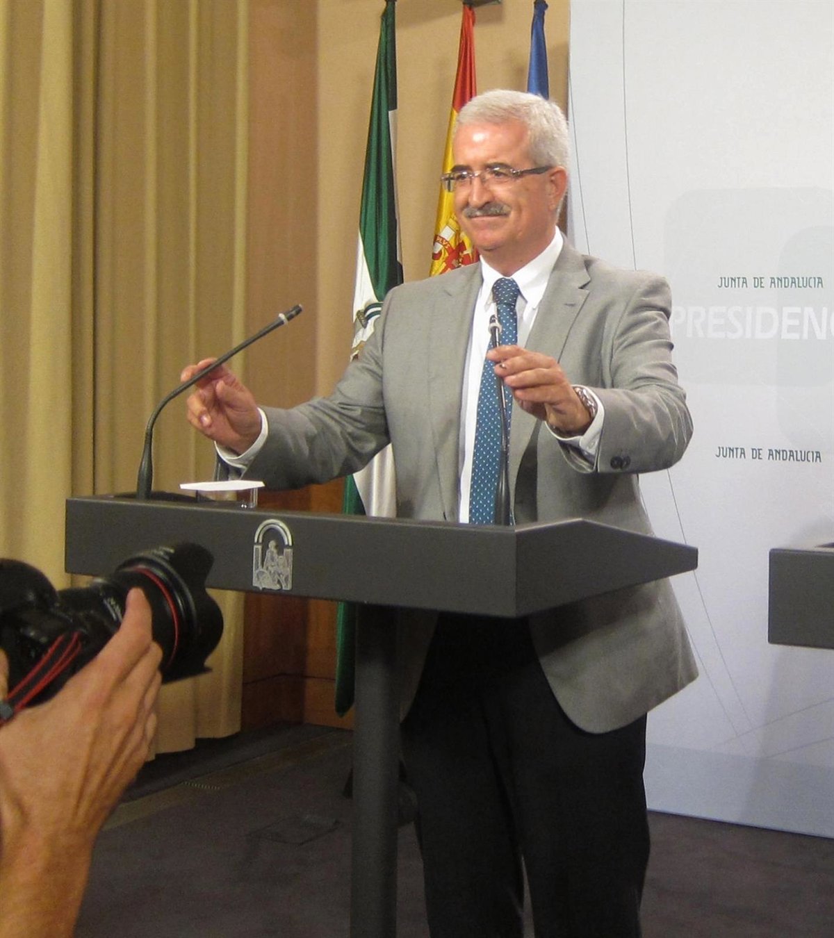 El vicepresidente de la Junta y consejero de Presidencia y Administración Local, Manuel Jiménez Barrios, ha advertido de que los 265 millones de euros que el Gobierno andaluz tiene que devolver al Estado por la liquidación presupuestaria definitiva de 2013 serán una "espada de Damocles" sobre el presupuesto de la comunidad para 2016 si el Ejecutivo central no acepta una solución.