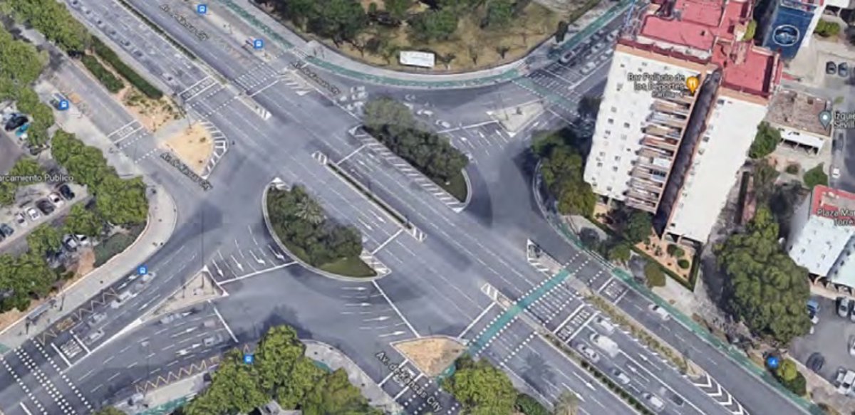 Archivo - Nudo de conexiones en avenida Kansas City, por donde discurrirá el tranvibús que unirá en una primera fase Santa Justa con Sevilla Este y Torreblanca. - AYUNTAMIENTO DE SEVILLA - Archivo
