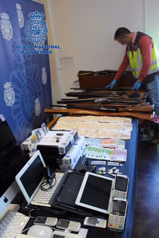 Tras proceder a la entrada y registro de las dos viviendas los agentes se incautaron de 47.000 euros en efectivo empaquetados en tacos de 10.000, sustancia estupefaciente separada en bolsas de medio y un gramo, pastillas para facilitar la erección masculina, trece armas largas de caza, material informático y diversa documentación del funcionamiento y control de la actividad ilícita del chalet.