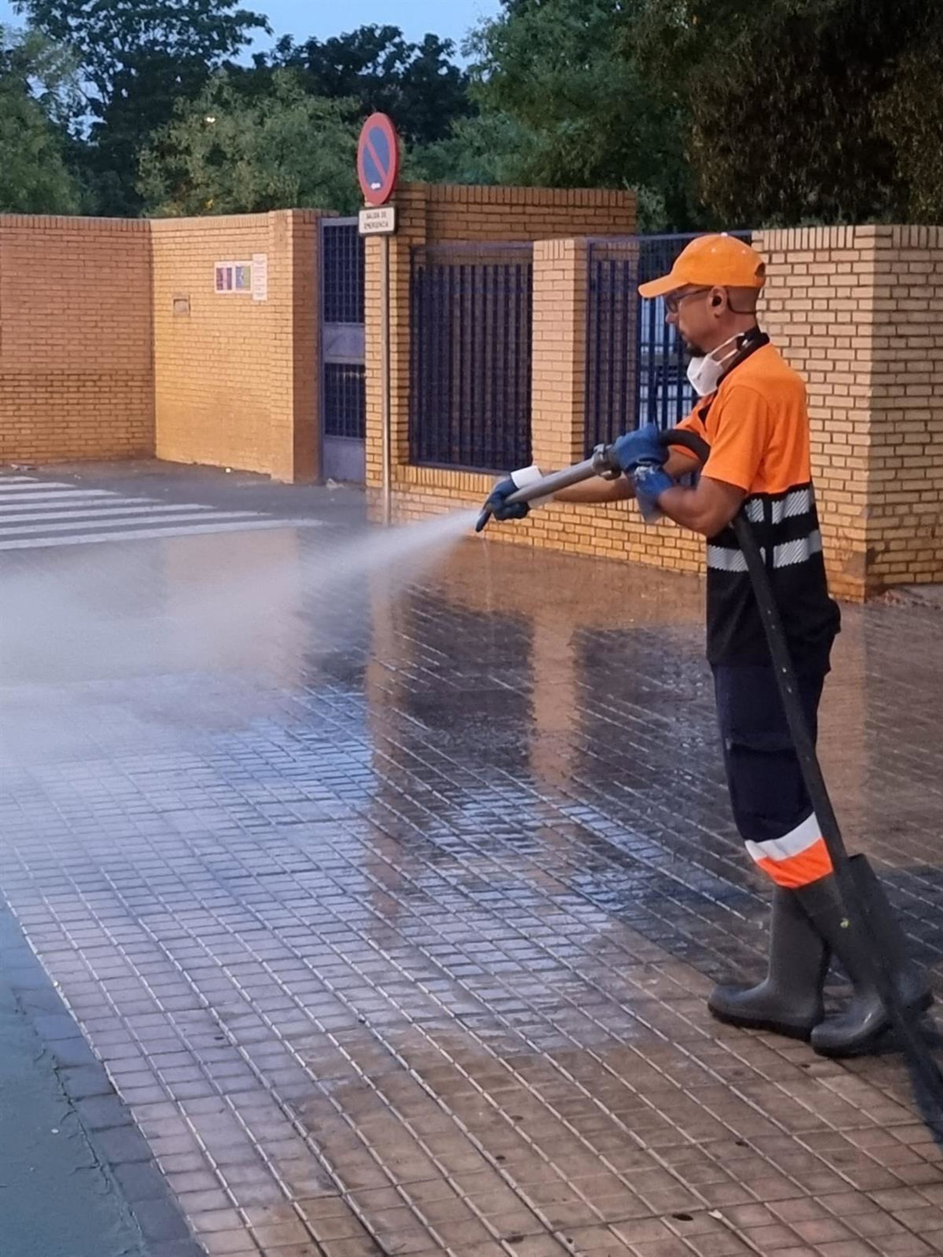 Los trabajos de Lipasam continuarán durante los próximos días hasta que todos los centros educativos de Sevilla, especialmente institutos y algunos centros universitarios, abran sus puertas.