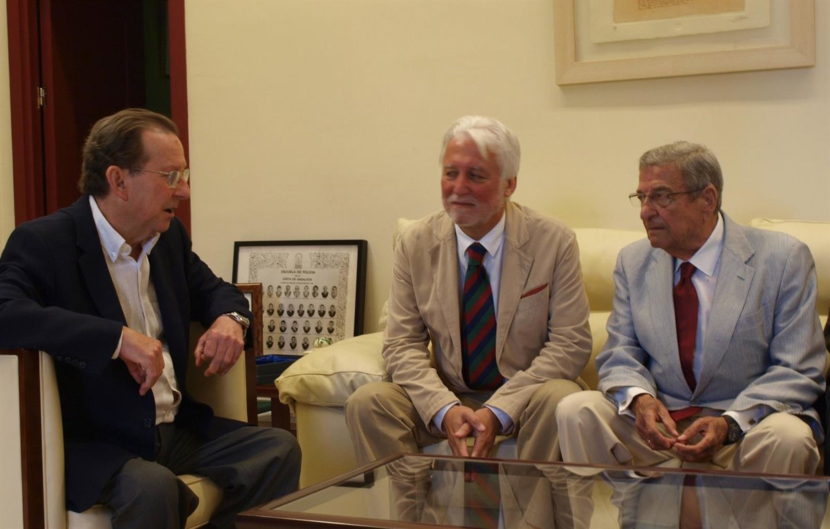 El consejero de Justicia e Interior, Emilio de Llera, se ha reunido con el presidente de la Real Academia de Medicina y Cirugía de Sevilla, Jesús José Castiñeiras, acompañado de otros miembros de la academia, para analizar las actividades de la misma y de su fundación.