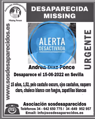 Según ha informado la Asociación a través de Twitter, se trata de Andrea Díaz. Tras ser localizado SOSDesaparecidos ha desactivado la alerta por desaparición.