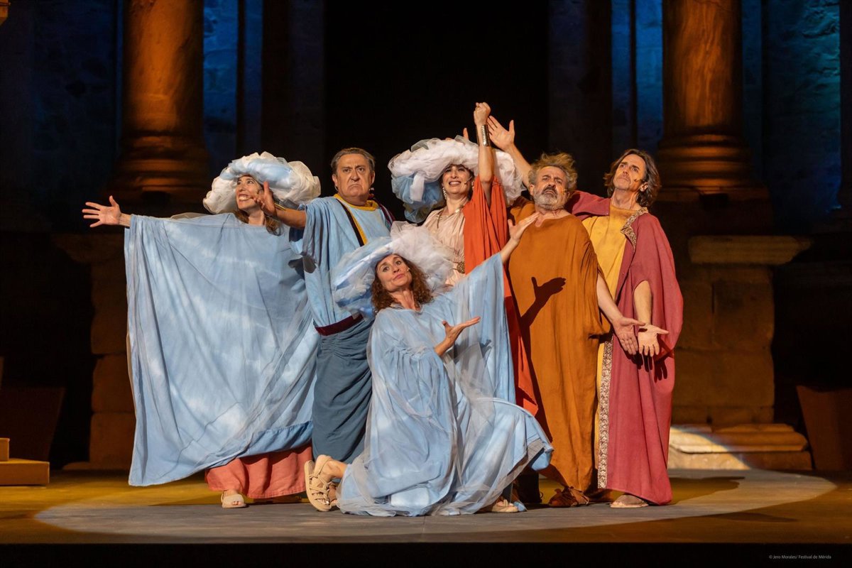 Este próximo miércoles 20 y jueves 21 de diciembre, el elenco encabezado por Mariano Peña, Pepe Viyuela, Cristina Almazán y Manuel Monteagudo traerá al Cartuja Center (21,00 horas) la adaptación al presente de 'Las Nubes', estrenada en el pasado Festival de Teatro de Mérida con éxito de público y crítica y que llega por primera vez a Sevilla tras una gira por todo el país, ha apuntado el Ayuntamiento en una nota de prensa.
