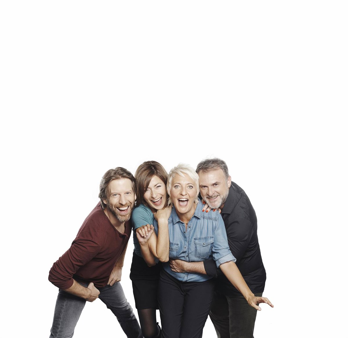 'Los vecinos de arriba' se estrenó el pasado mes de abril de 2016 en Madrid con gran éxito de público y crítica. Desde julio está girando por los principales teatros del país. El espectáculo está protagonizado por dos parejas, dos hombres y dos mujeres, encarnados por Eva Hache, María Lanau, Xavi Mira y Andrew Tarbet.