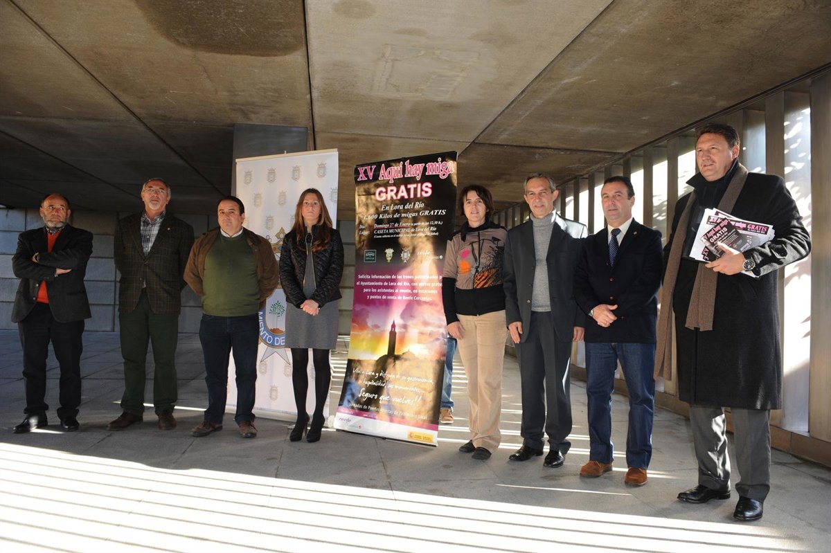 La diputada del Área de Empleo e Innovación de la Diputación de Sevilla, Dolores Bravo, y el alcalde de Lora del Río, Francisco Javier Reinoso (PSOE), han presentado este jueves la decimoquinta edición de 'Aquí hay Miga', que se celebrará el domingo 27 de enero. En el acto, ha participado, asimismo, el hermano mayor de la Hermandad del Santo Entierro, Manuel Corona, entidad que organiza el evento junto al ayuntamiento del municipio.