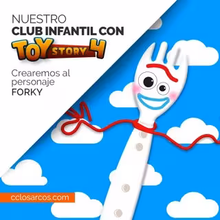 Así, aprovechando que este viernes se estrena la película de animación más esperada de la saga de Disney-Pixar, Los Arcos cambia el taller previsto sobre actividades para celebrar el verano, por un taller de manualidades en el que se creará a 'Forky', cuya traducción al español sería "tenedorcito". Como su nombre lo indica, se trata un tenedor que tiene ojos movibles, brazos de lana y otros detalles que lo convierten en un juguete artesanal.