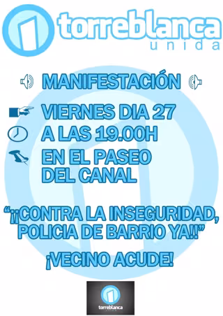 Dado el caso, la nueva manifestación está destinada a reclamar a las administraciones una "atención específica en materia de seguridad ciudadana y convivencia". En esta línea, la reivindicación de los vecinos de Torreblanca de los Caños se centra en la implantación de la "policía de barrio" y una inversión en "infraestructuras y planes de seguridad que puedan reafirmar la convivencia en la barriada".