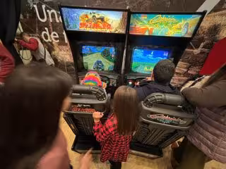 Son medio centenar de puestos de juegos en máquinas 'vintage' con los videojuegos más famosos entre el público de aquellas década: Pacman, Mario Cars, Tetris, Streetfighter, Crusing World, Dancing Stage (DDR), Varth Operación Thunderstorm, Windjumpers, Perdidos, las Tortugas Ninja, Astérix y múltiples juegos de carreras, aviones, supervivencia y habilidades.