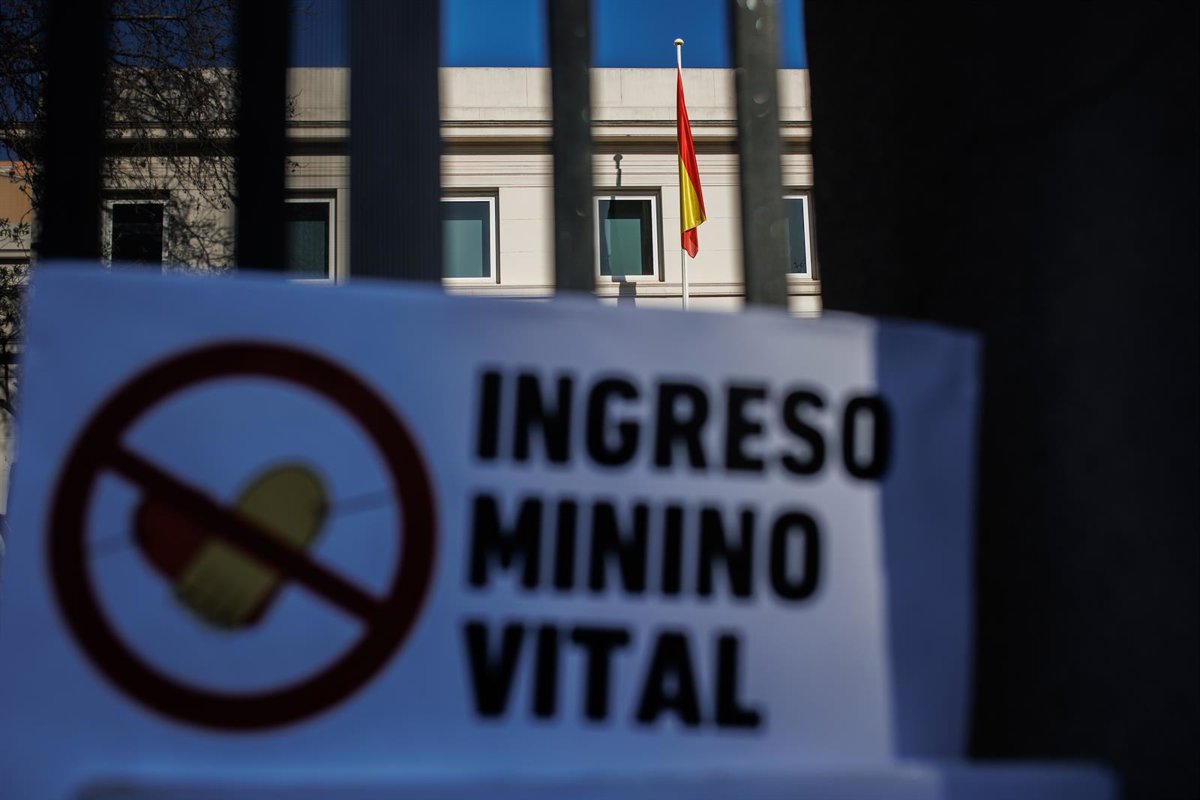 Imagen de archivo de un cartel del Ingreso Mínimo Vital. - Alejandro Martínez Vélez - Europa Press