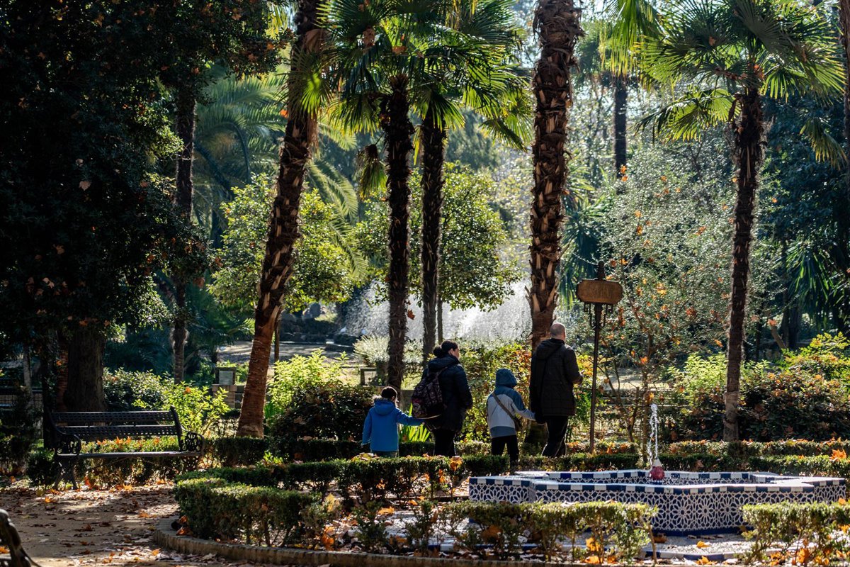 Archivo - Personas abrigadas pasean por el Parque de María Luisa - Eduardo Briones - Europa Press - Archivo