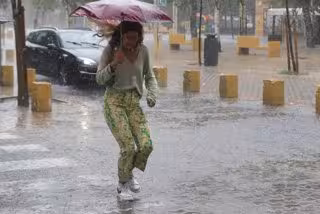 Archivo - Una mujer cruza un charco durante una tormenta - María José López - Europa Press - Archivo