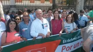 Más de 30 alcaldes, concejales y portavoces del PSOE de Sevilla se han trasladado esta mañana a Madrid, a las puertas del Ministerio de Agricultura, Alimentación y Medio Ambiente, para expresar su "rotundo rechazo al brutal recorte en las ayudas de la PAC" a Andalucía y a Sevilla.
