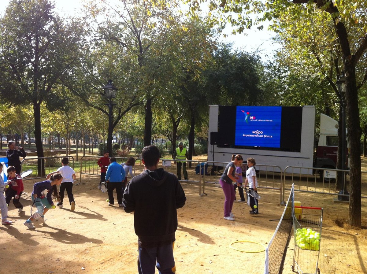 Según ha informado el Ayuntamiento en un comunicado, estas clases prácticas de tenis han sido realizadas en pistas móviles que han ido recorriendo los principales parques y plazas de los diferentes barrios de la ciudad, entre ellos, los de María Luisa, Amate y Miraflores.