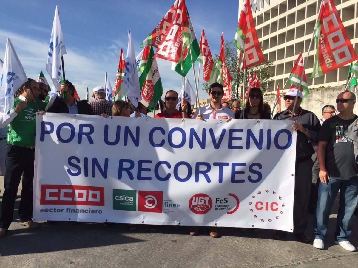 Unos 650 delegados sindicales se han concentrado este viernes en Granada, Córdoba y Málaga ante el "atasco" que existe en la negociación del convenio de ahorro, según han indicado a Europa Press fuentes de CCOO, quienes piden "un convenio sin recortes".