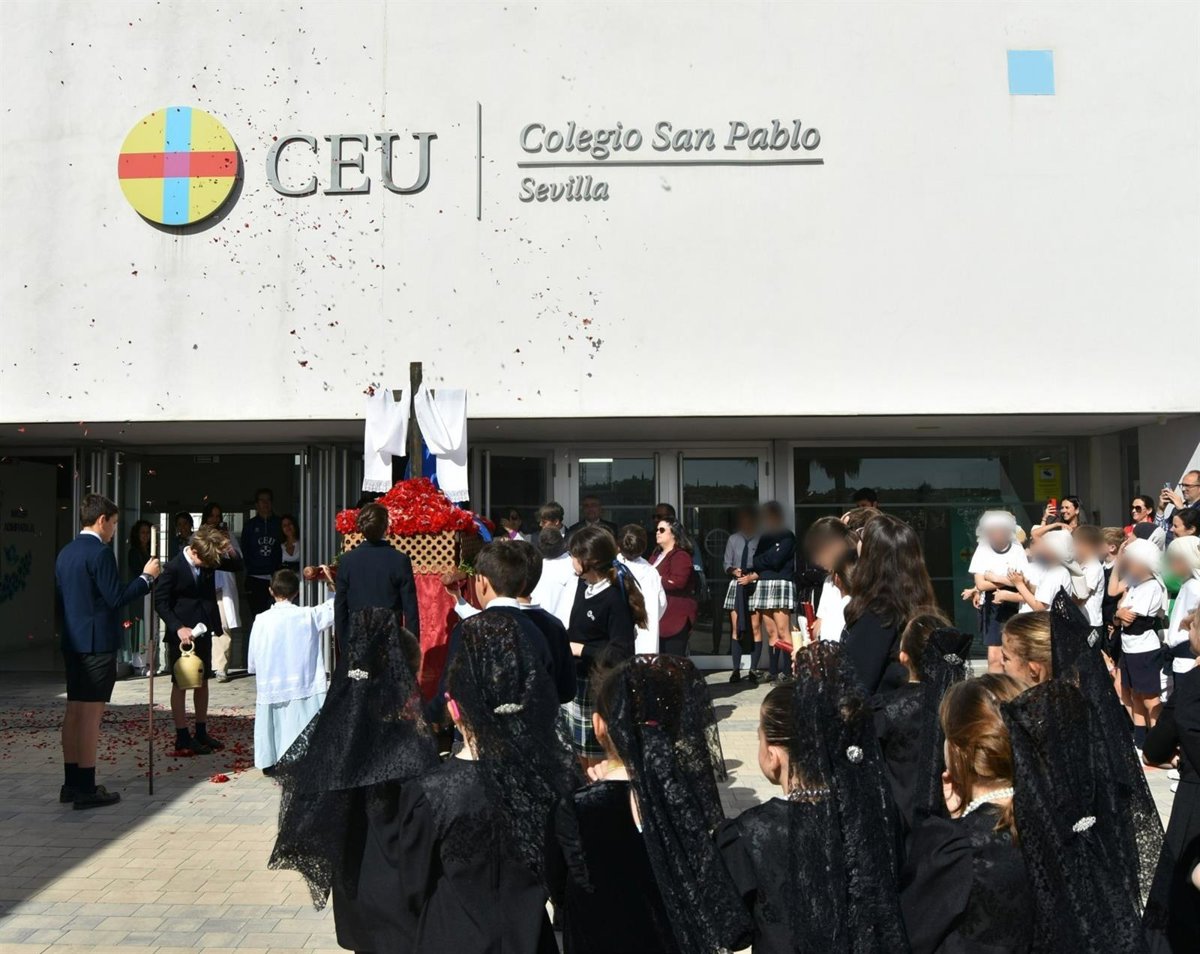 El Colegio CEU San Pablo Sevilla ha celebrado este Viernes de Dolores su tradicional procesión de Semana Santa, enmarcada en los actos programados de Cuaresma. Con este acto, se acerca a los alumnos a la "peculiar forma de vivir" en Sevilla la Semana Santa, anticipando lo que verán en las calles en los próximos días. En la procesión han participado más de un centenar de escolares.